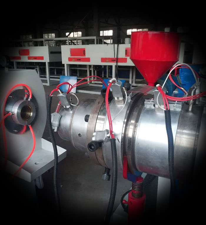 超豐塑機生產(chǎn)的PE管材包含供水,電力.排污,燃氣等,設(shè)備主要采用PE效率高的螺桿以及高扭矩立式結(jié)構(gòu)減速箱;直流驅(qū)動電機。既保證了效率高的擠出的穩(wěn)定性,又可實現(xiàn)低熔體溫度帶來的應(yīng)力和管材質(zhì)量。采用效率高的雙腔真空定徑技術(shù)和噴淋冷卻水槽,提高管材的成品率,滿足高速生產(chǎn)的需要。采用多履帶牽引機,牽引力均勻平穩(wěn),各履帶由獨立的交流伺服電機驅(qū)動,并由數(shù)字式控制器控制的驅(qū)動技術(shù)實現(xiàn)了準(zhǔn)確的速度調(diào)節(jié),以達到高度的同步。PE管設(shè)備采用高速、精準(zhǔn)設(shè)計的切割機,切割斷面平整,并配有強力吸屑裝置,將維護工作降至低限。
